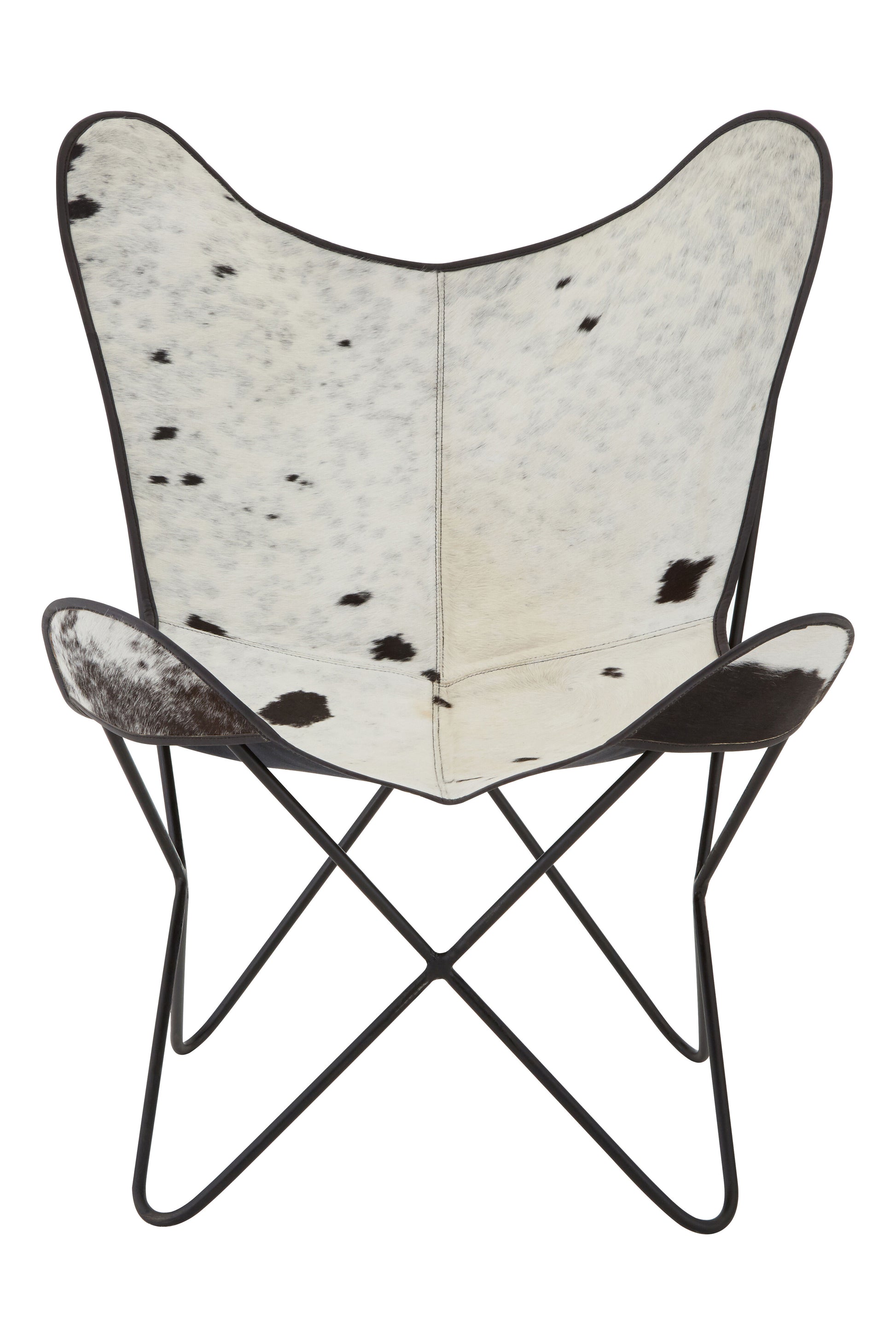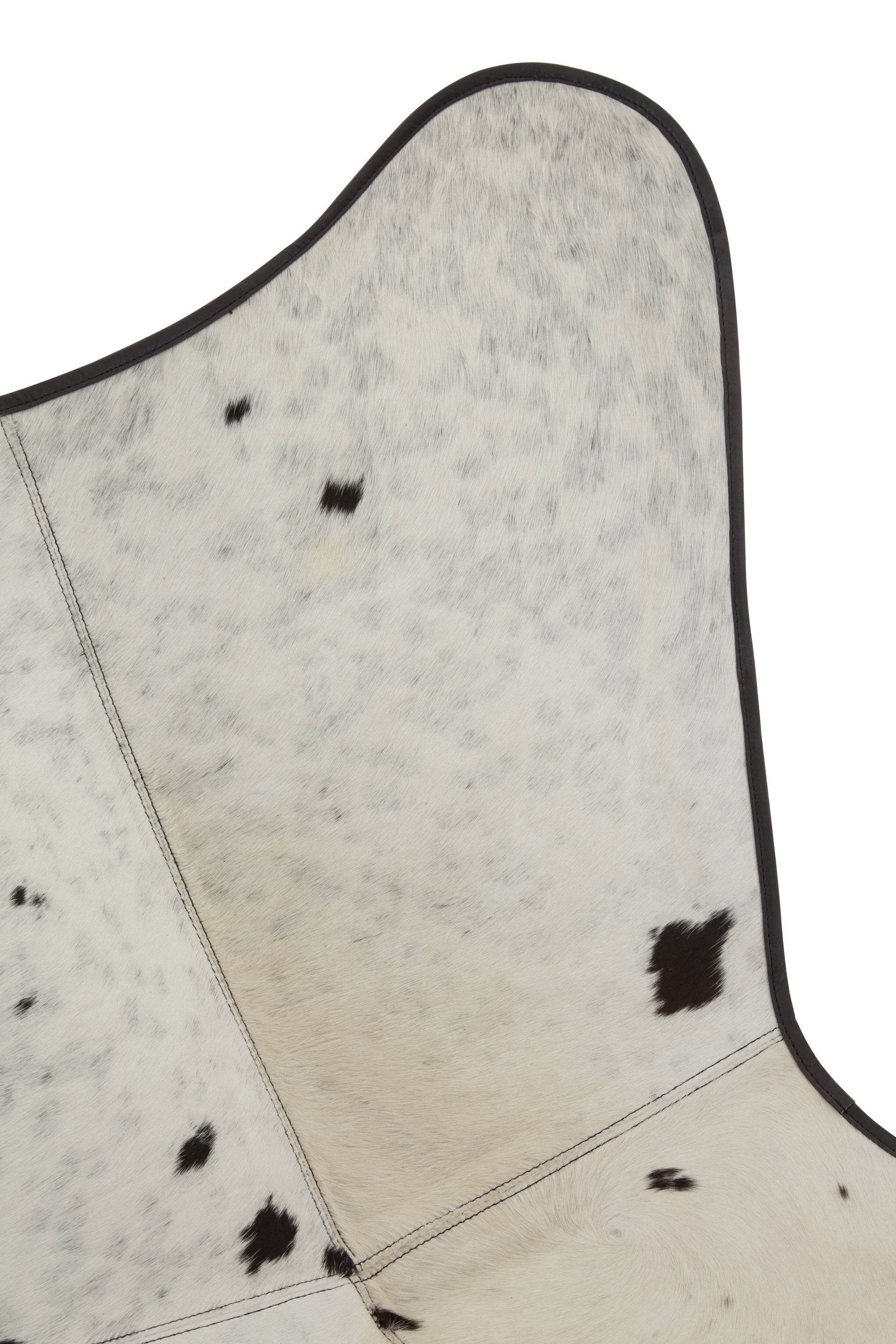 Our beautiful Buffalo Black and white cowhide sling chair with black iron frame legs is a textured monochrome experience for your decor.