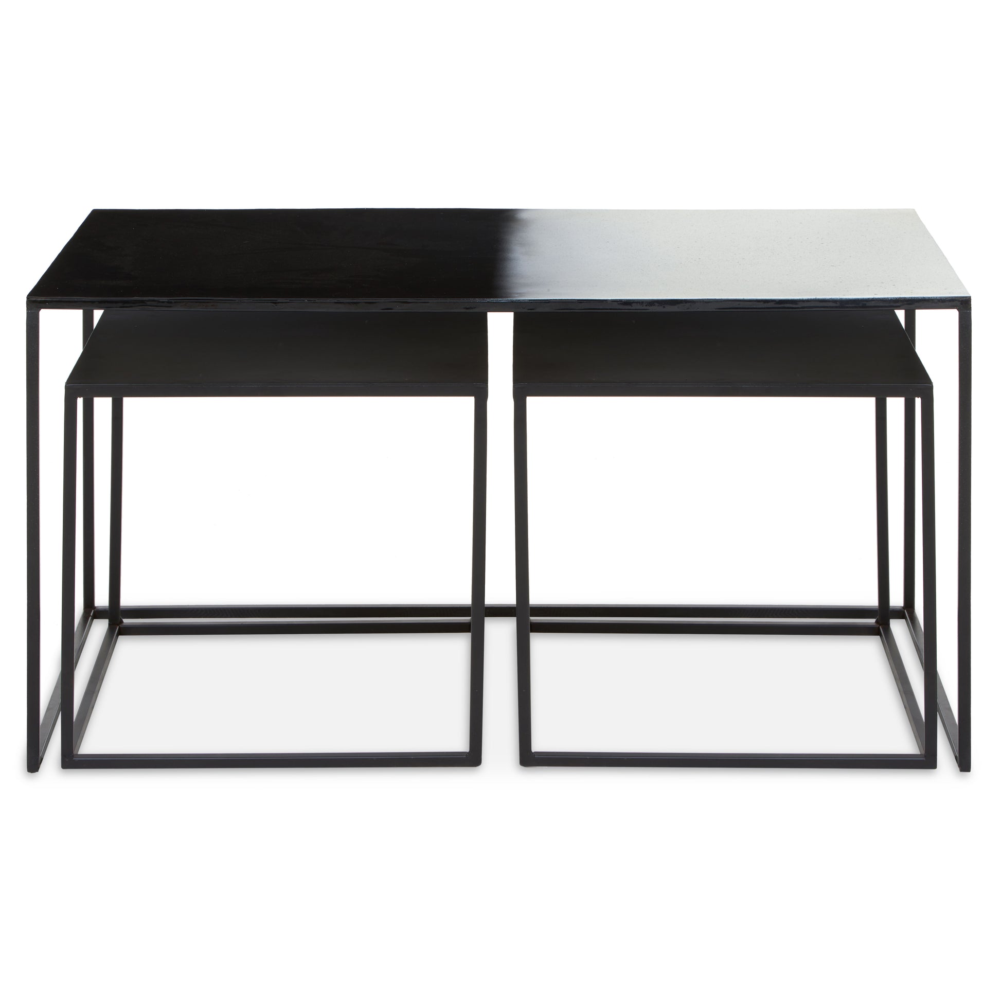 Crafted with sleek and slender iron frames, the Knight Ramus three piece black and white ombre coffee table exudes a contemporary and minimalist aesthetic.